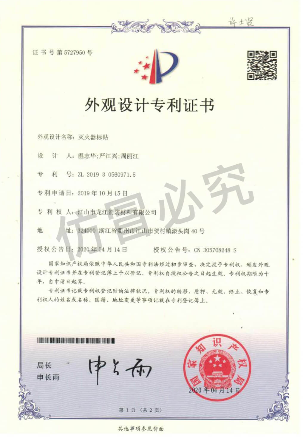 外观设计专利证书